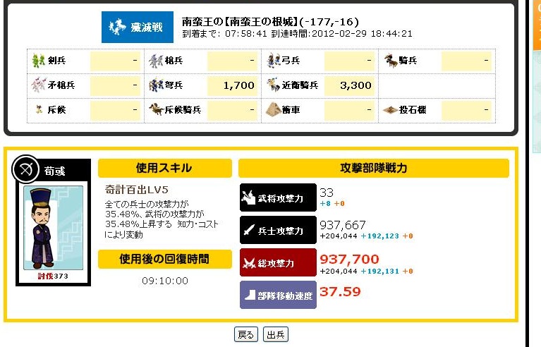| 南:ちょーーーっ、レべリング出兵が終わってからかお卵の到着まで1分しか無いよー。 即帰還して神医で回復してデッキセットして。。。1分では無理。 か:すみません、職場で人目を盗みながらやってるものですから (><) なかなか細かいことができないんですよ。 余ってるの適当にセットしておいてください。 (か:逃げた南蛮王として宣伝しておくか。 ひっひっひ ← 大嘘失礼 ) |
