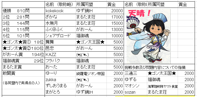 期末の忙しい時期に運営にご協力をいただいた同盟担当者のみなさま、ご後援くださったみなさま、そして寝る間を惜しんでクイズに挑戦し